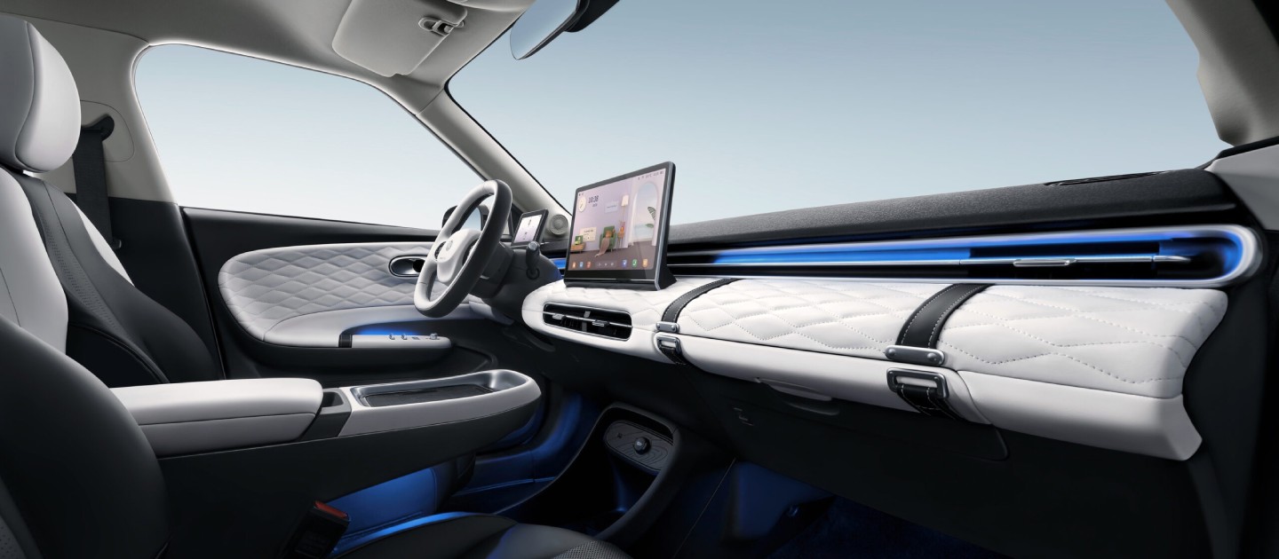 Gli interni della Dongfeng Box si distinguono per un comfort che fa la differenza. Progettata per ospitare fino a cinque persone, l’abitacolo massimizza gli spazi ed è curato nei minimi dettagli per offrire un’esperienza di viaggio unica. I rivestimenti in pelle con trama a diamante e le linee morbide creano un ambiente accogliente e raffinato. Il sedile del guidatore include una funzione memoria, mentre il passeggero può usufruire di una console con cassetto a scomparsa e un bracciolo centrale. Inoltre, i sedili anteriori possono reclinarsi completamente per trasformarsi in un comodo letto o divano. Con un vano portabagagli modulabile fino a 945 litri, la Box è versatile per ogni esigenza.