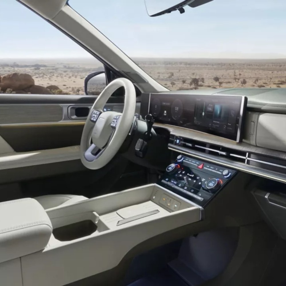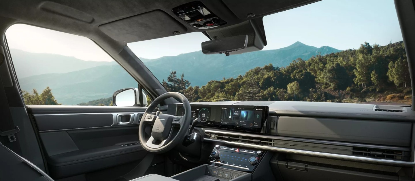 È bello sapere di poter viaggiare sempre connessi. Ecco perché SANTA FE è dotata di un elegante display panoramico con due schermi integrati, un touch screen da 12,3" per l'infotainment e un cluster digitale da 12,3".