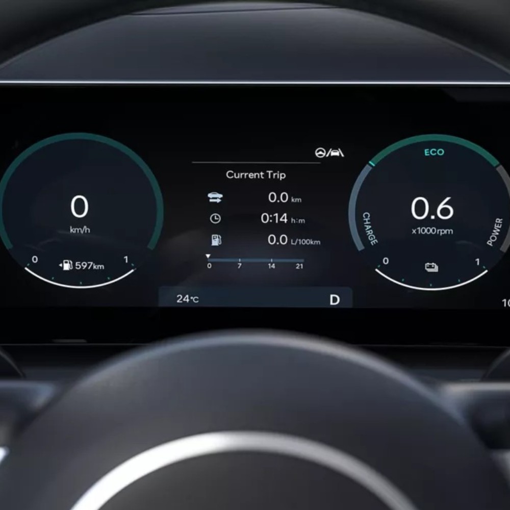 L'head-up display da 12” mette a tua disposizione, sulla visuale della corsia di fronte a te, informazioni essenziali per la guida, come la velocità e le indicazioni del navigatore.