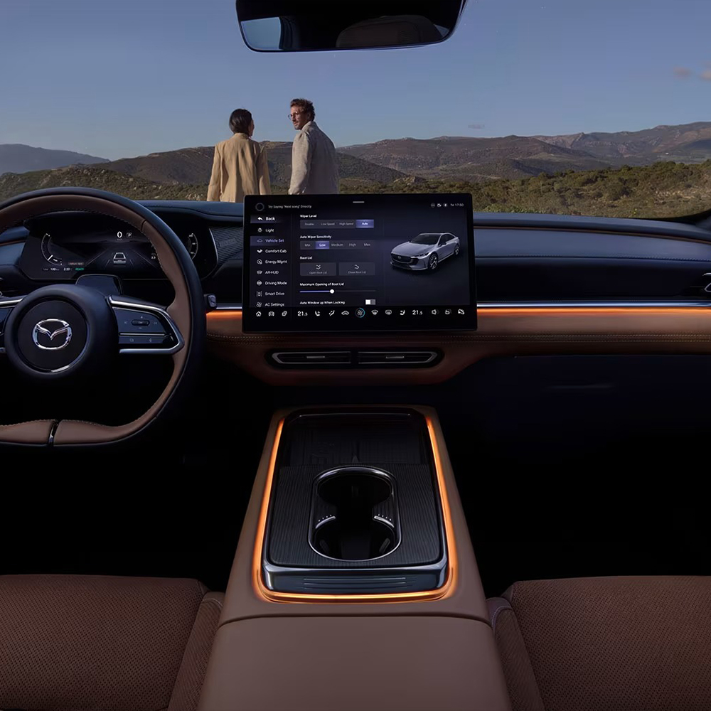 Nuova Mazda 6e utilizza un sistema di illuminazione ambientale unico. Servendosi di esclusive fonti luminose indirette, crea un’atmosfera di calma e serenità nell’abitacolo. E con 64 opzioni cromatiche disponibili, il sistema è completamente personalizzabile.