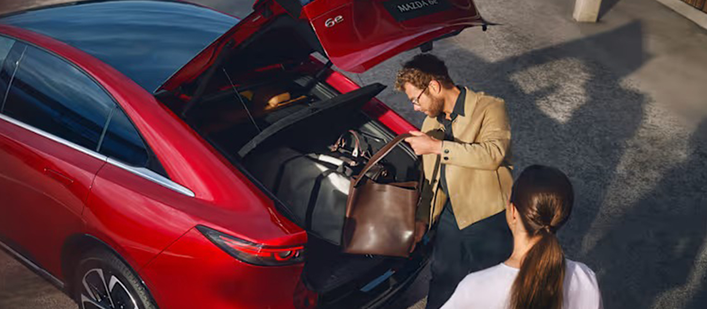 Nuova Mazda6e, nonostante il suo design da coupé, offre la praticità di un bagagliaio tipico di una vettura a due volumi. Il vano bagagli ha infatti una capienza di 466 litri che diventano 1.074 litri con i sedili posteriori abbattuti. Anteriormente è presente un vano bagagli da 72 litri che può contenere una borsa extra o il cavo di ricarica.
