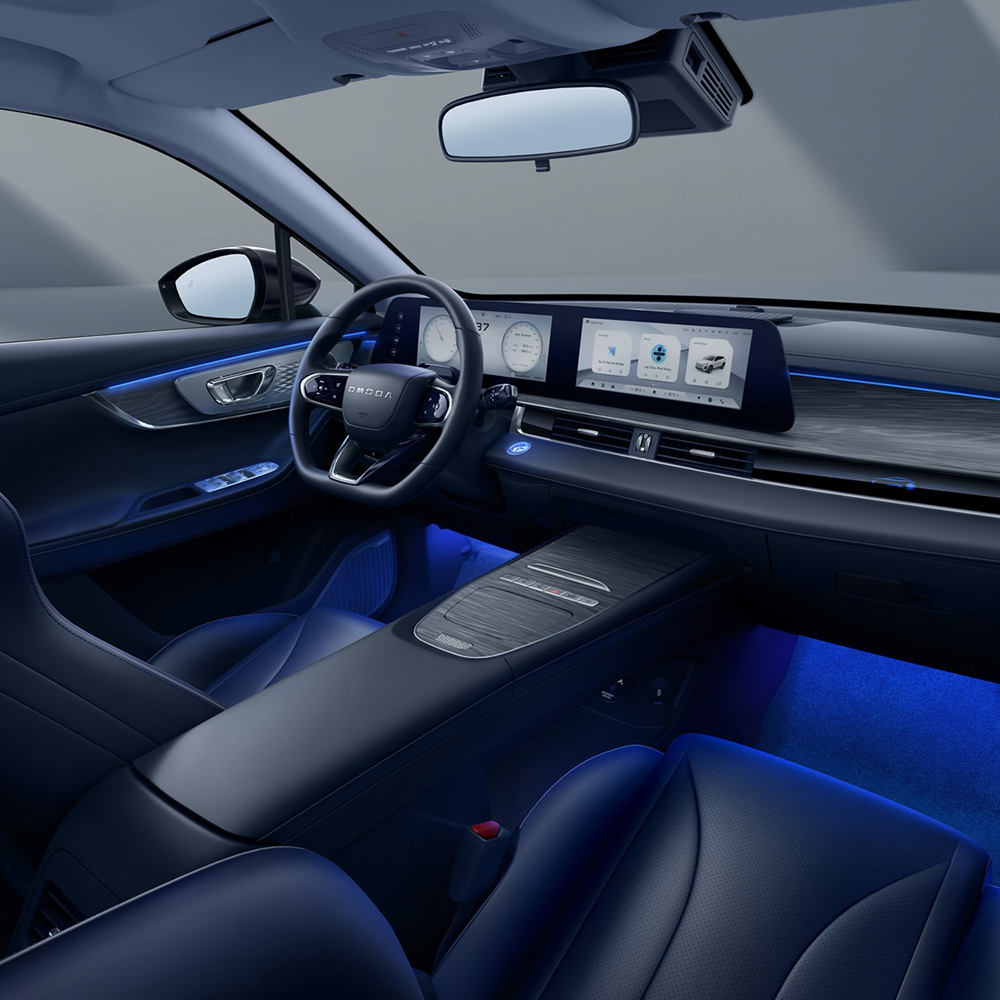 Le luci di marcia diurna a forma di T sono il tratto distintivo di OMODA 5. I potenti fari a LED garantiscono la massima visibilità notturna, mentre il design innovativo delle luci posteriori a matrice crea un affascinante effetto 3D. L'illuminazione distintiva di OMODA 5  esalta l'estetica di un'auto futuristica.