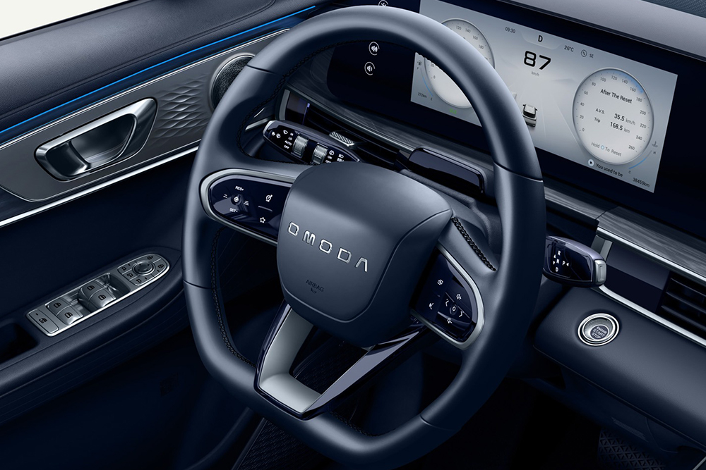 Davanti al conducente di OMODA 5 si trova un quadro strumenti digitale e un avanzato sistema multimediale. Due display LCD da 12,3 pollici ciascuno offrono una risoluzione HD; il secondo display è di tipo touch e supporta Android Auto e Apple CarPlay in modalità wireless.